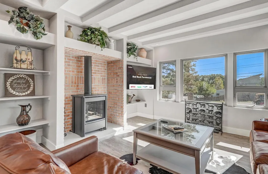 Red Rock Farmhouse - Patio Paradise Hiking Trails comes with media amenities like Wi-Fi and a TV set, as well as climate control, ensuring the comfort of our guests. Bathroom facilities also include a tub. Hairdryers and towels are included to enhance your comfort.